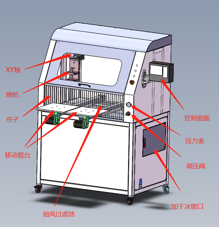 還實(shí)現(xiàn)了Y軸上疊加的超大行程,X Y軸為特制模塊化模組,高效且穩(wěn)定耐用。全封閉式清洗不僅噪音低而且安全美觀,內(nèi)部具有抽風(fēng)過(guò)慮系統(tǒng),可把清洗噴出的二氧化碳和其它有害氣體排出過(guò)濾,并可收集廢料于過(guò)濾池中方便清潔保養(yǎng)。