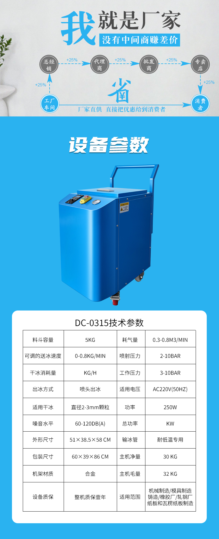 DC-03顆粒干冰清洗機(jī),干冰儲(chǔ)存容量大,清洗時(shí)間長。